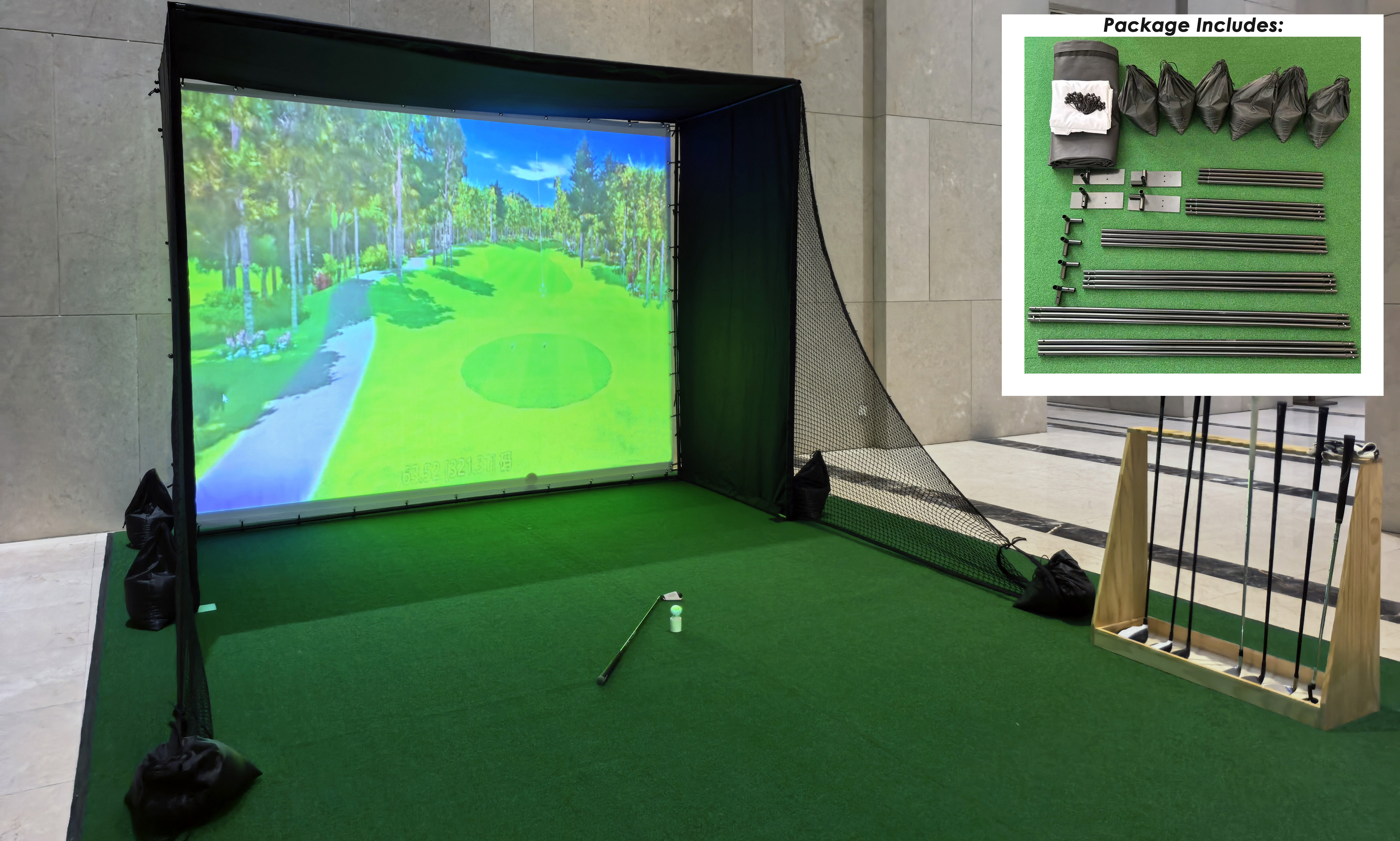 The golf simulator enclosure net is specifically designed for authentic golf practice in both home and commercial settings, providing players with a secure and reliable space for swing training.